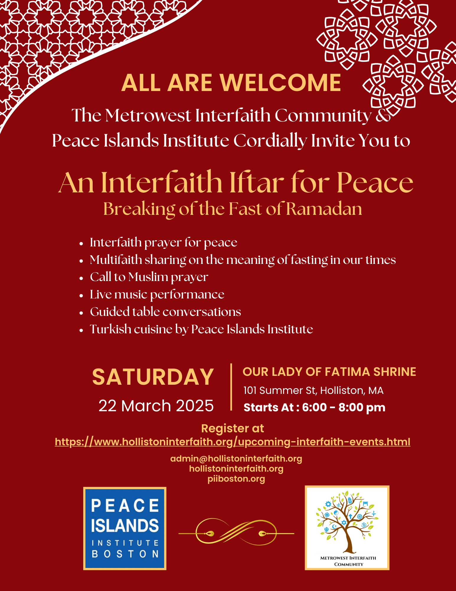 Contact admin@hollistoninterfaith.org for more information. See more on the importance of Catholic Interfaith Relations