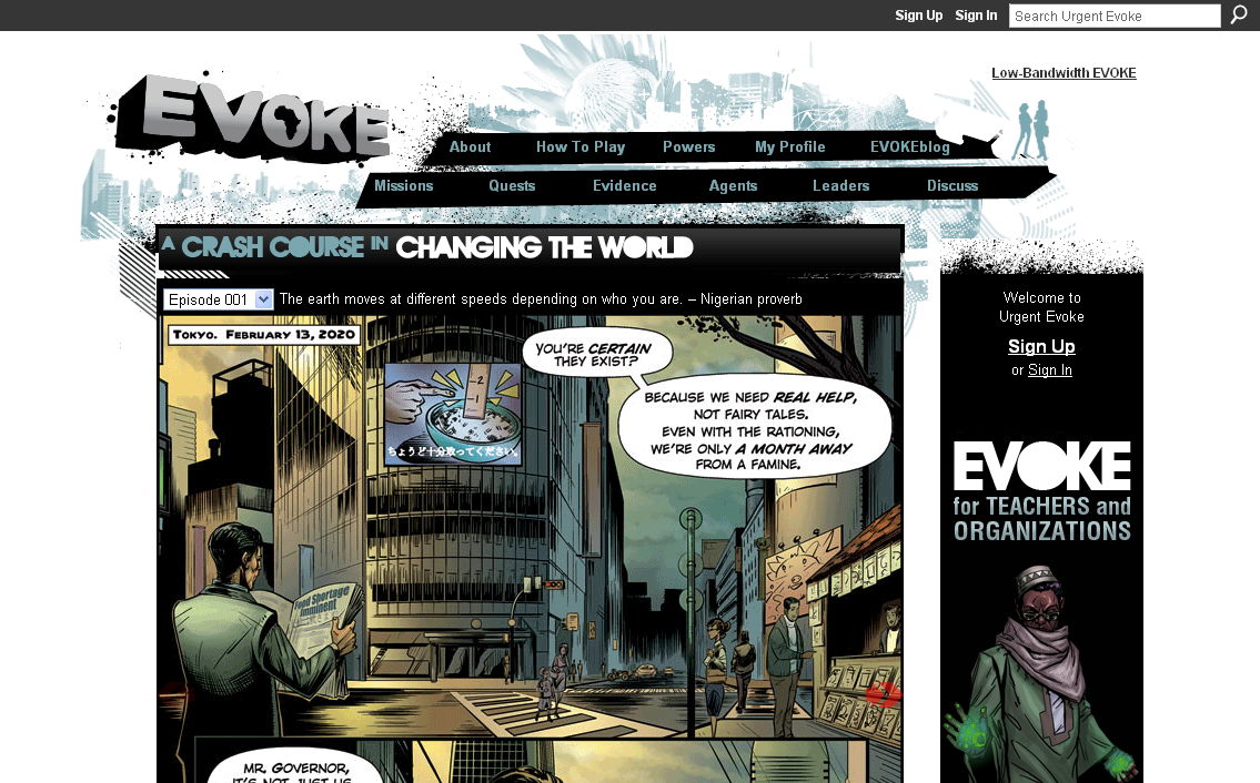 EVOKE is a social network game that amounts to a ten-week crash course in changing the world.