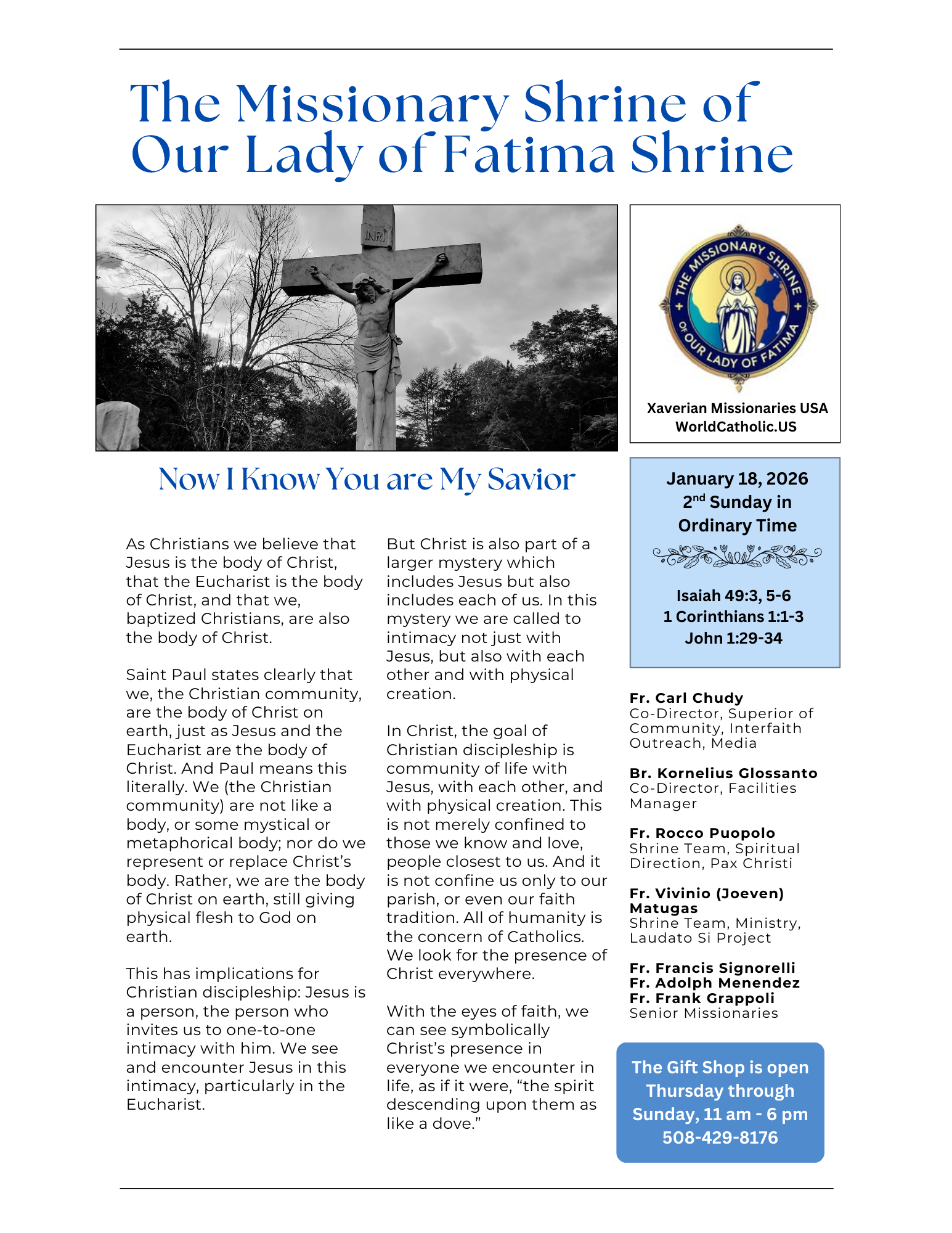- Fr. Carl Chudy – Co-Director of the Shrine, Mission Media Office, Interfaith Outreach cchudy@xaverianmissionaries.org
